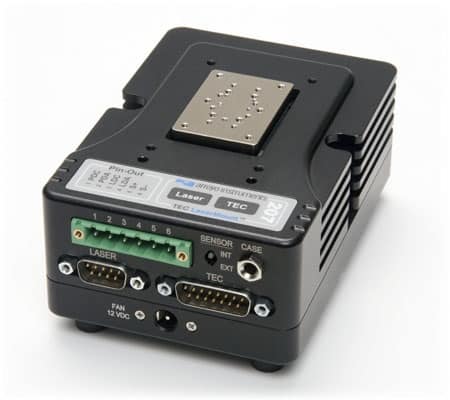 The 207 LaserMount offers excellent cooling performance for lasers in the 5-10W optical power range. Meant primarily for fiber pigtailed lasers, it can also be used for LED testing (it includes a mounting pattern for STAR LEDs).